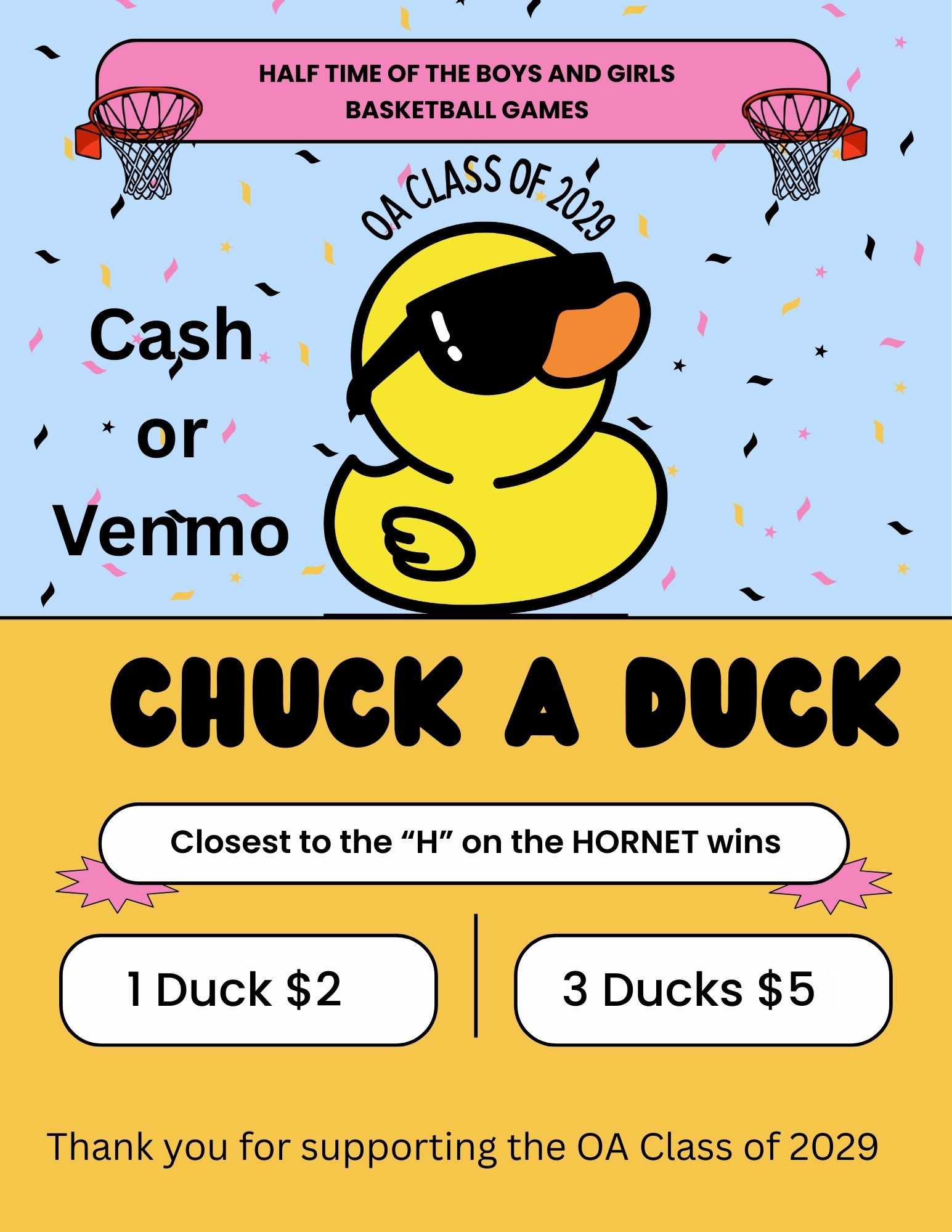 Support the Class of 2029 and look for Chuck a Duck at home basketball games, bring cash or Venmo to play!