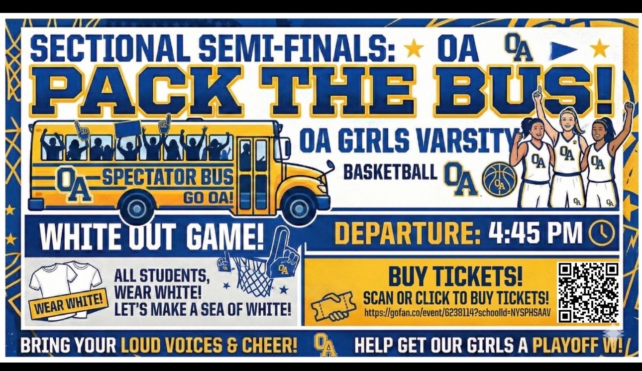 Saturday the OA Girls basketball team plays Pavilion in second round sectional competition.For digital tickets please visit https://gofan.co/event/6204028?schoolId=NYSPHSAAV Can't make it, but want...