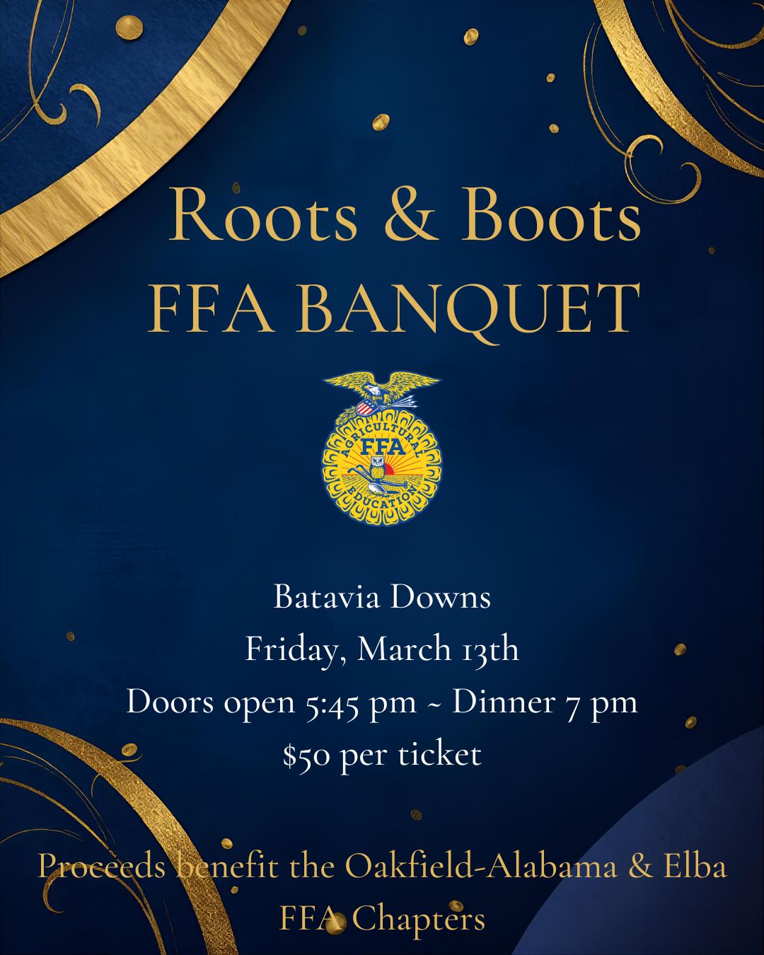 Tickets are selling fast - DON'T DELAY! This is a very enjoyable and important event, held at The Batavia Downs for the benefit of both Oakfield-Alabama and Elba FFA Chapters. For tickets email To...