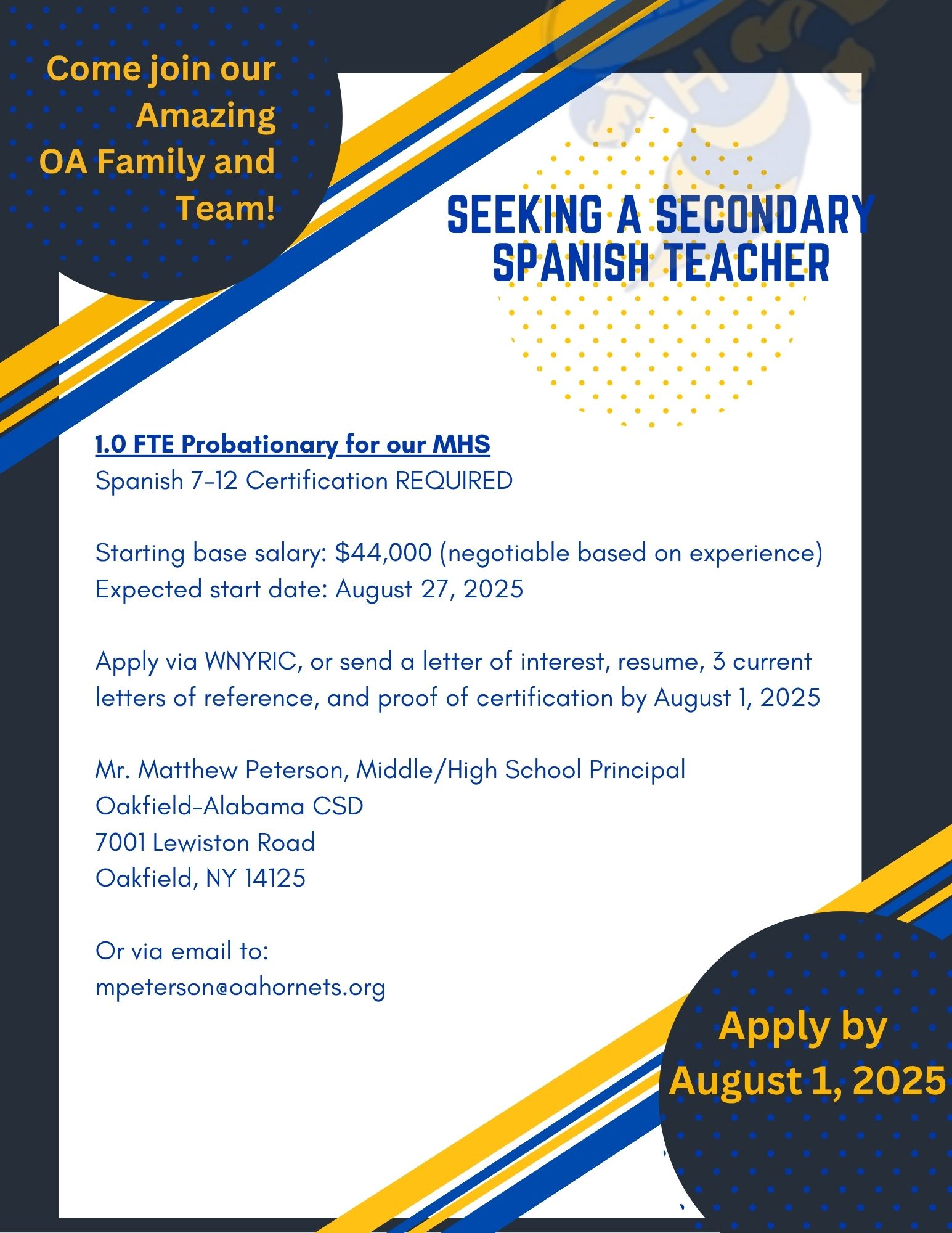 All Students can learn. With this in mind, the mission of the Oakfield-Alabama Central School District is to ensure all students acquire and develop the skills and work habits to enable them to become productive members of society.