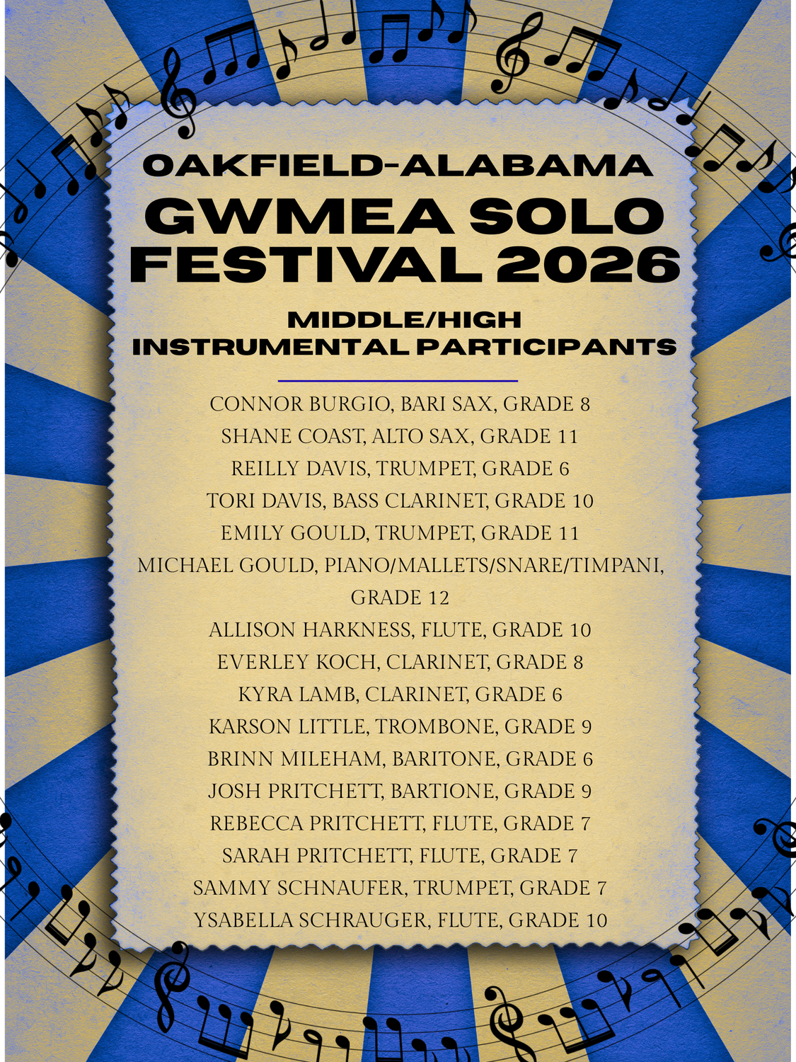 O-A Students Participate in GWMEA Solo Festival! Outstanding Work!
